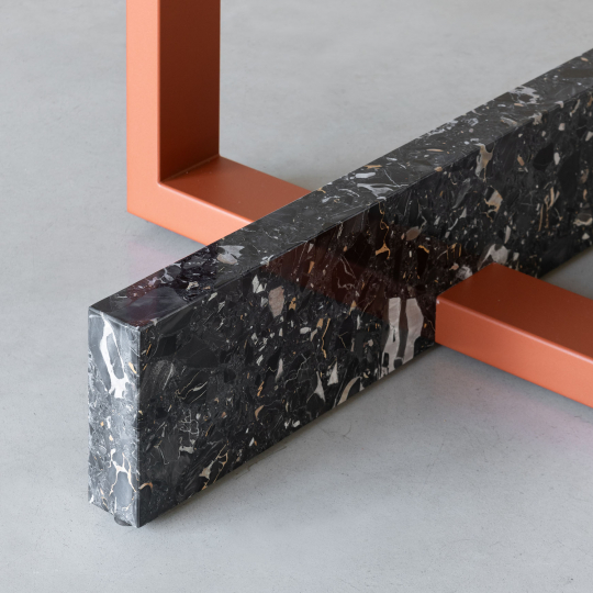 Un excellent meuble compact, qui ajoute également une touche d’élégance à la maison, grâce au détail raffiné de sa base en marbre recyclé.