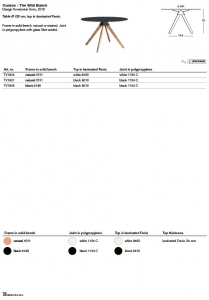 Materiales: estructura en madera maciza de haya natural o barnizada; junta en polipropileno moldeado por inyección estándar, reforzado con fibra de vidrio; tablero de laminado Fenix.