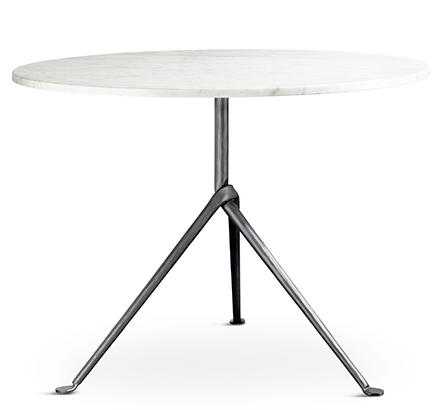 Materiales: estructura de hierro forjado, galvanizado o tratado anti-oxido y barnizado en poliéster. Tablero en chapa de acero electro-galvanizada y barnizada en poliéster, en madera maciza de nogal americano y en mármol de Carrara.