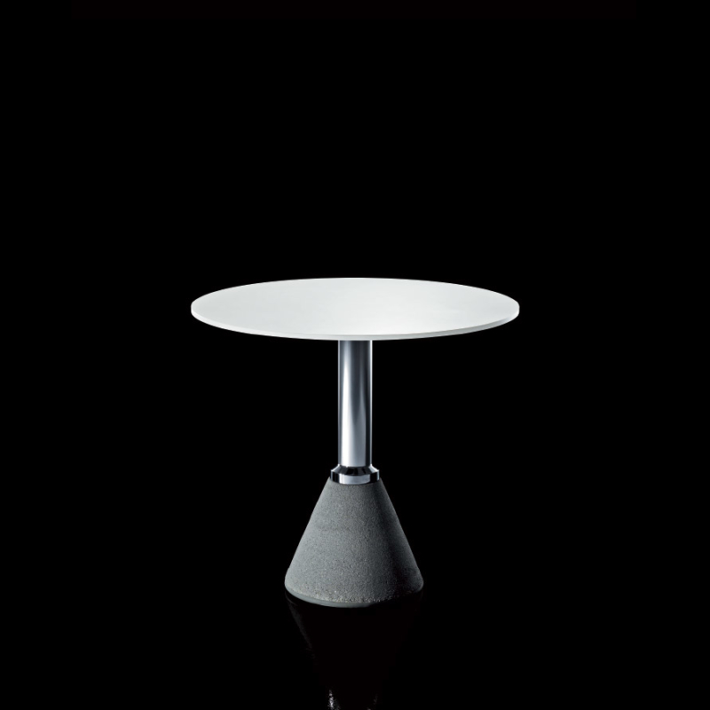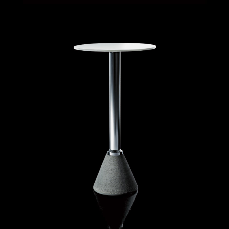 Frame: Polished aluminum Top: HPL White 8500 Base: Concrete painted in black