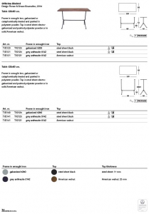 Matériaux: structure en fer forgé galvanisé ou traité en cataphorèse et verni en polyester. Plateaux en tôle d’acier electro-galvanisé et verni en polyester ou en noyer americain massif.