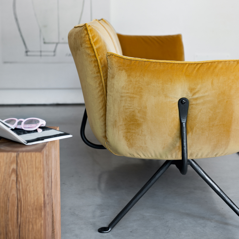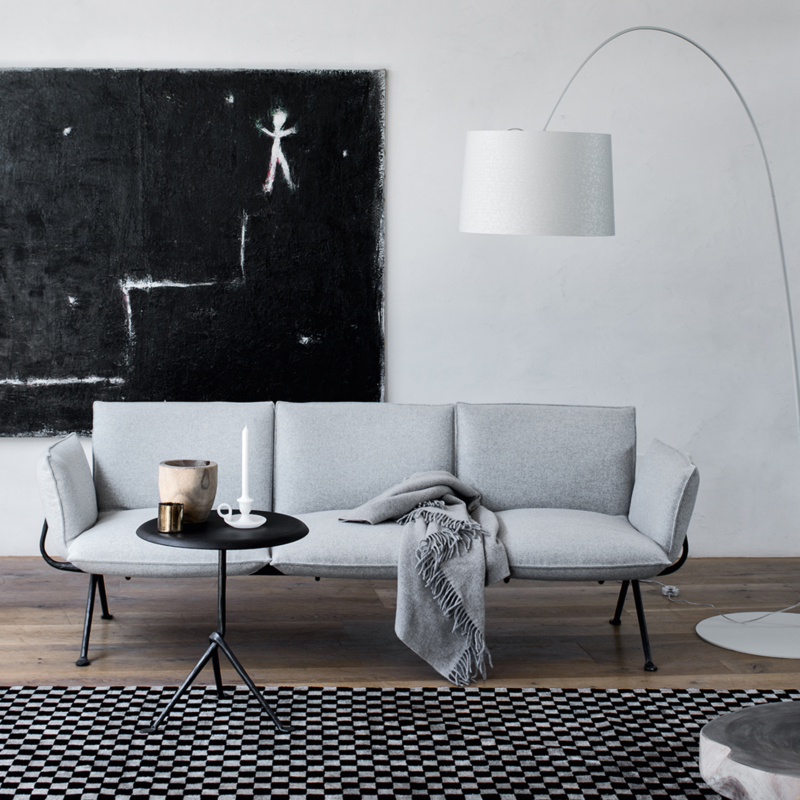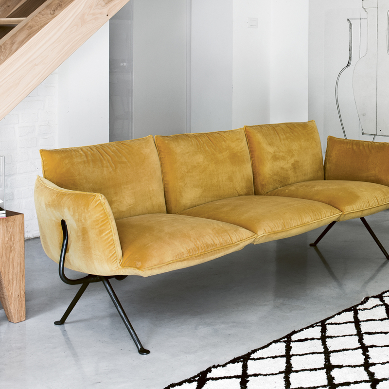 Matériaux: structure en fer forgé verni polyester. Coussins en polyuréthane expansé, avec revêtement en cuir ou en tissu déhoussable (Velvet, Limonta Indianskop, Torri Lana Rico, Kvadrat Divina MD, Kvadrat Divina Mélange, Kvadrat Hero, Kvadrat Vidar, Florida leather). Coussin appui-reins et ottoman aussi disponibles.