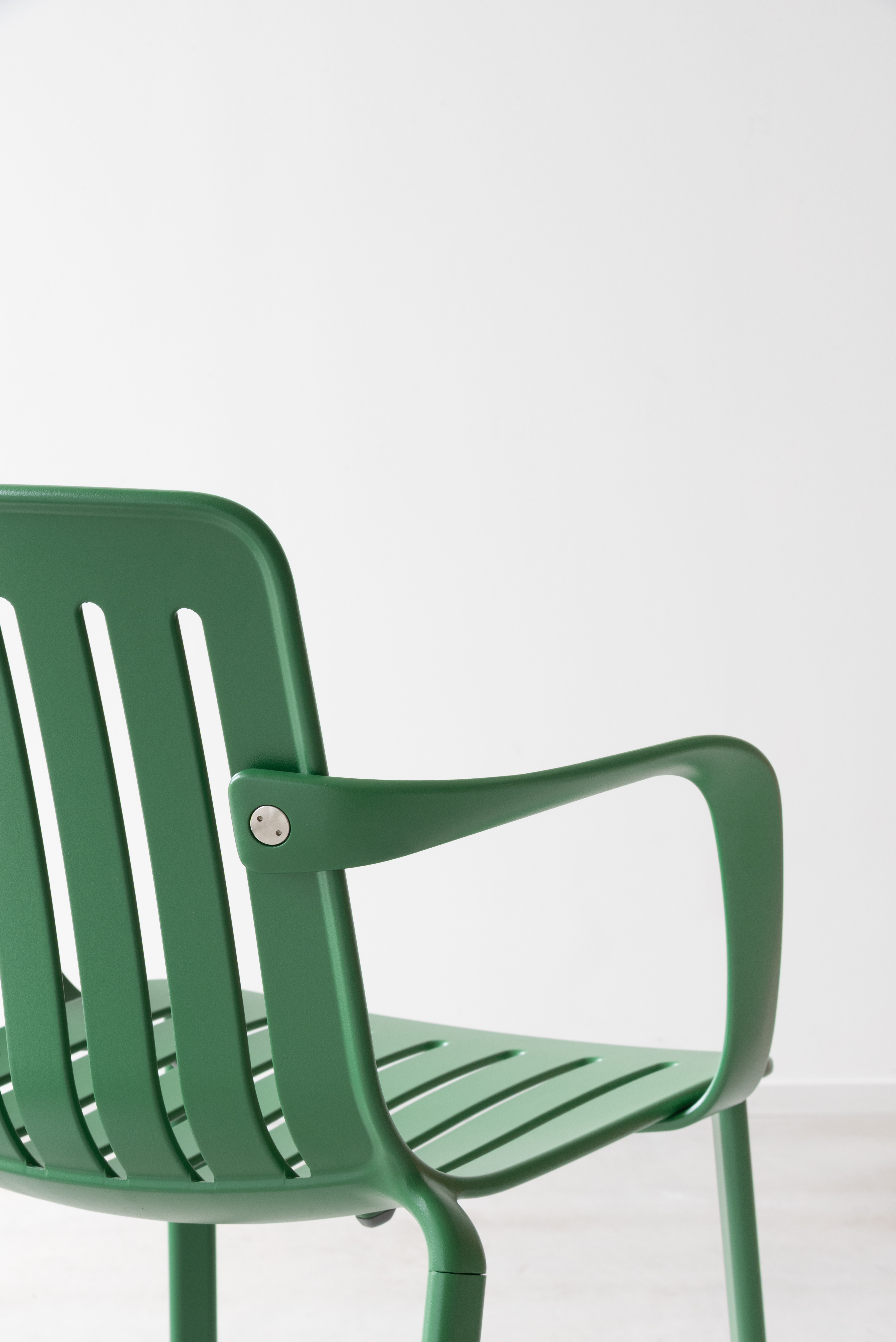 Matériaux: pieds en aluminium verni en polyester. Assise en fonte d’aluminium verni en polyester. Conçue pour l’extérieur. Coussin d’assise aussi disponible (Kvadrat Divina MD, Kvadrat Divina 3).