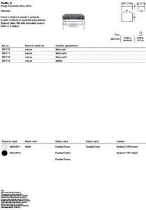 Matériaux: structure en fil d’acier verni en polyester; coussins en polyuréthane expansé revetus en cuir ou en tissu déhoussable (Velvet, Kvadrat Tonus, Kvadrat Colline, Kvadrat Tonica, Kvadrat Coda, Boxland leather).