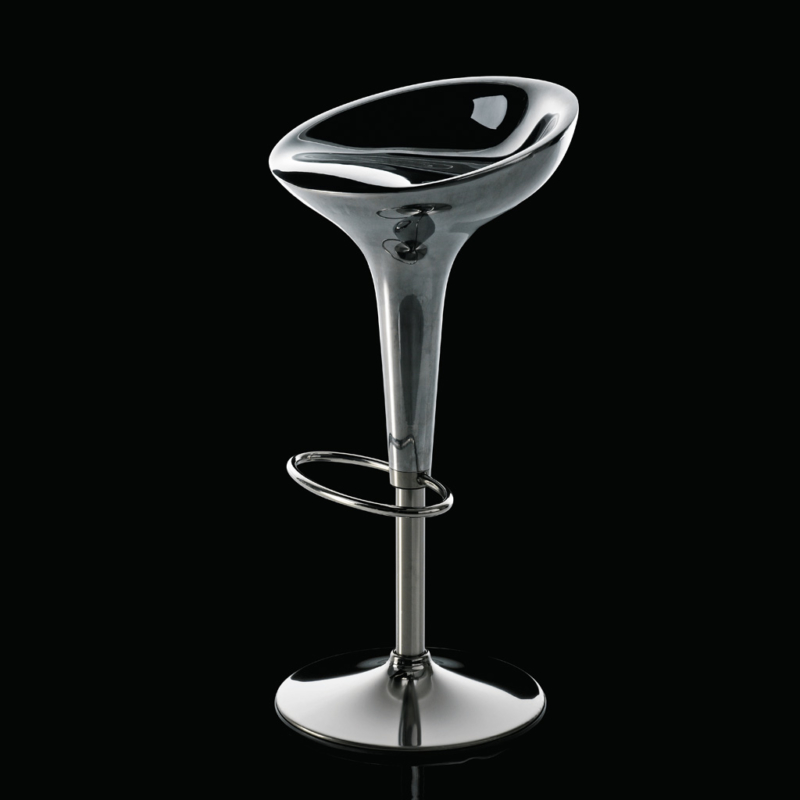 Regolabile in altezza con pistone a gas. Materiali: base, colonna, poggiapiedi e maniglia in acciaio inossidabile, sedile in pressofusione di alluminio lucido.