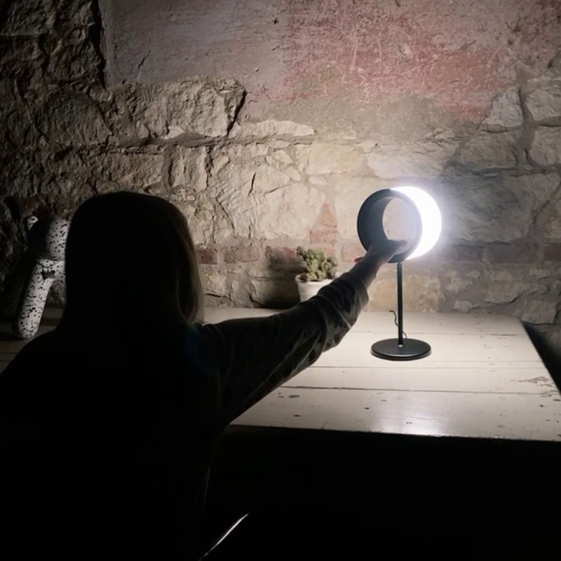 Materiale: Corpo lampada in ABS verniciato. Scheda multi-led con diffusore in PMMA. Base in pressofusione di alluminio verniciato. Stelo in tubo di acciaio verniciato. Fonte luminosa inclusa: 252 Mid Power Led 3000K, CRI90 1200 Lm potenza 9W. Interruttore touch con funzione dimmer. Alimentatore incluso. Lunghezza cavo: 2m.