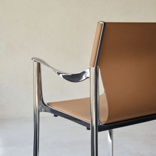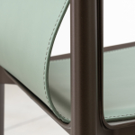 Materiali: sedile in pressofusione di alluminio verniciato poliestere o lucido. Gambe in profilato di alluminio verniciato poliestere o lucido. Sedile e schienale in pelle.