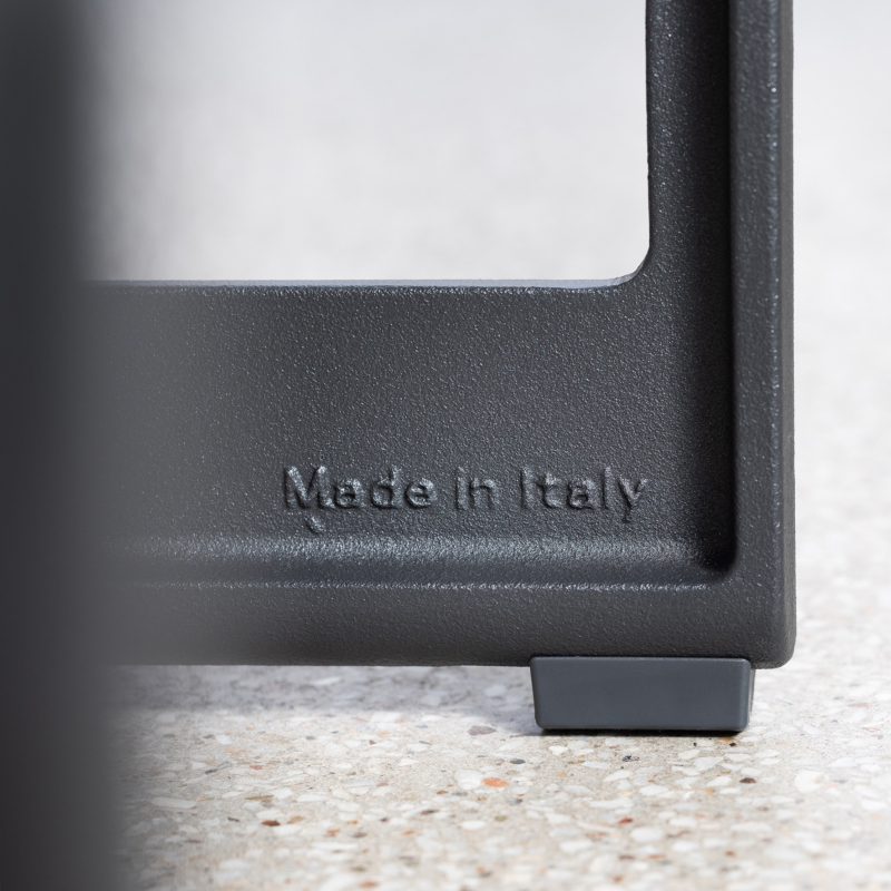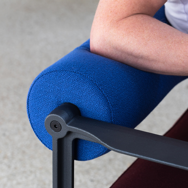 Materials: frame in cast iron painted in polyester powder. Cushions in expanded polyurethane with removable cover in fabric (Kvadrat Divina MD, Kvadrat Divina Mélange, Kvadrat Hero, Kvadrat Vidar, Torri Lana Rico or Velvet).