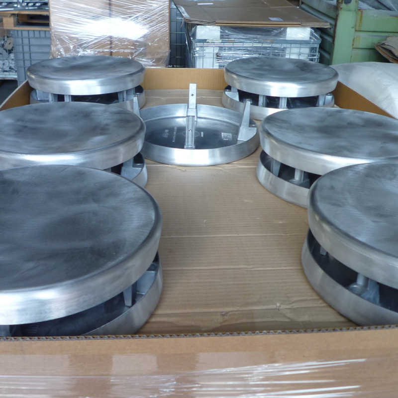 Material: legs in extruded aluminium (polished or painted). Seat and footrest in die-cast aluminium (polished or painted).
