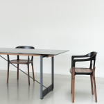 Material: seat and legs in solid beech (natural, painted, stained), or in solid natural American walnut. Back in steel plate painted in polyester powder.
