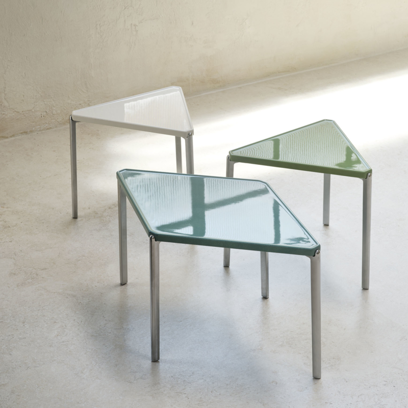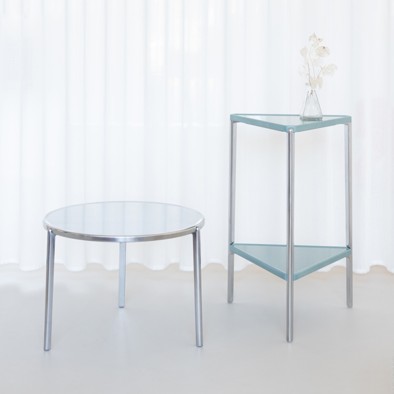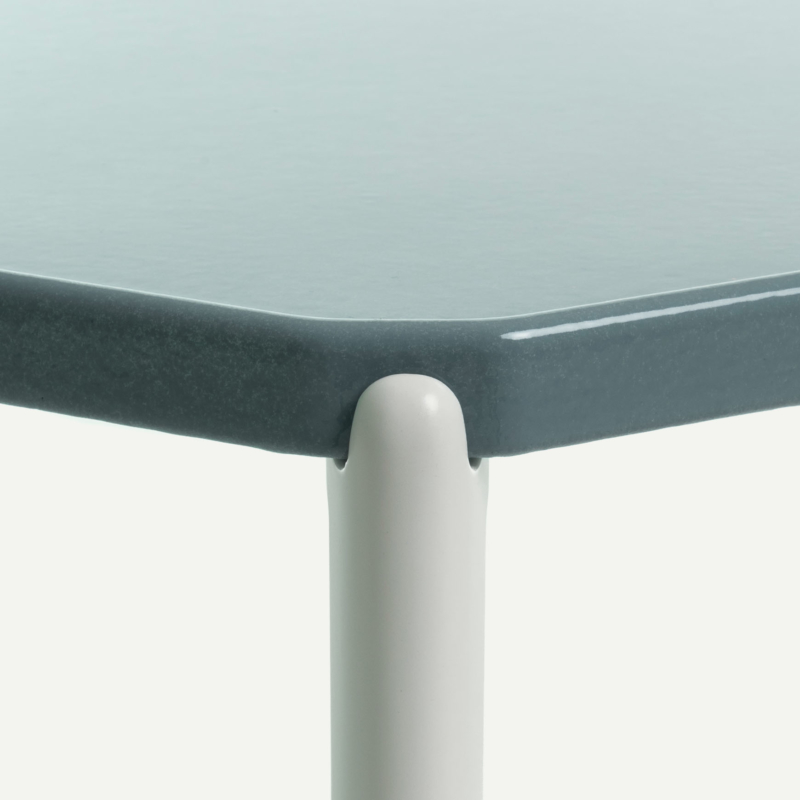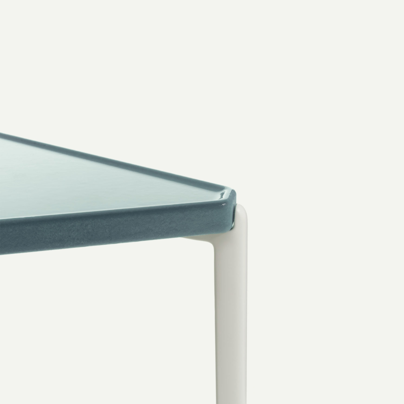 Materials: frame in polished die-cast aluminium and in powder coated aluminium (for outdoor version). Concrete top liquid painted glossy finish. Available in different dimensions.
